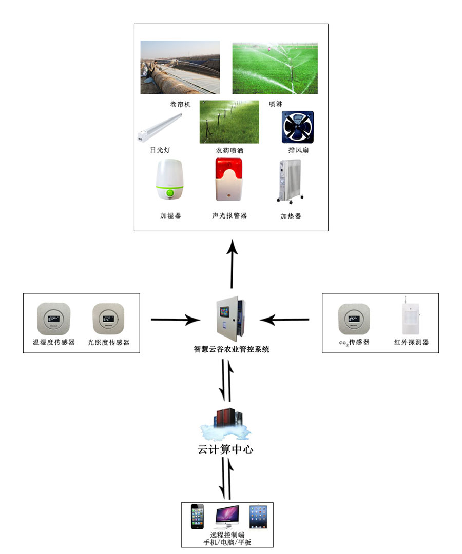 智慧農(nóng)業(yè)控制系統(tǒng)能夠?qū)⒍噙_幾十萬臺的控制終端同時連接到云計算中心,可以在同一平臺下對多個地區(qū),多個控制點進行集中控制,更能夠進行大范圍綜合計算與綜合控制。
